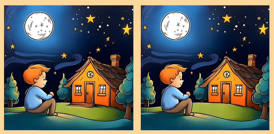 Спремни за следећи изазов? Погледајте изблиза две слике дечака који седи сам у позадини звездане ноћи. На први поглед слике могу изгледати исте, али након детаљнијег прегледа видећете да се на слици крију 3 разлике. Можете ли пронаћи ове разлике за 19 секунди? Покрените тајмер и тестирајте своју оштрину вида.