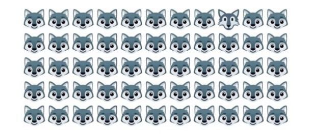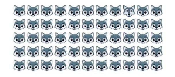 На слици је приказано педесет пет слика вука, али се само једна од њих значајно разликује од осталих. Морате пронаћи странца у овом јату за 5 секунди.
