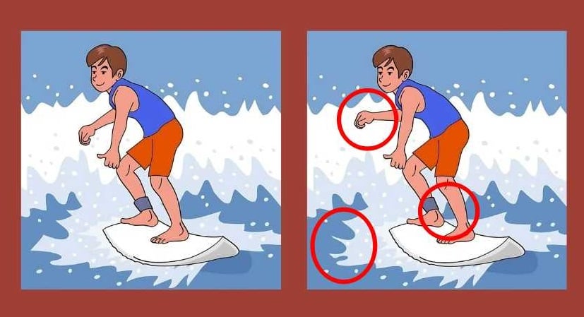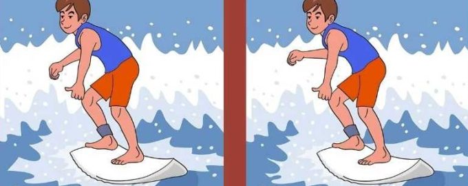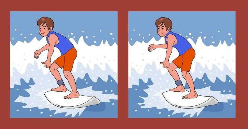 На слици видимо типа сурфера како осваја таласе на дасци за сурфовање. На први поглед може изгледати као да су момци на обе слике исти, али ако боље погледате, одмах ће вам бити јасно да то није случај – негде постоји неколико разлика које слике чине различитим.