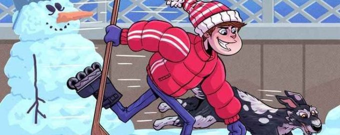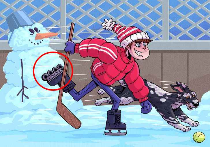 На слици видимо дечака како клиже по леду и пса који трчи поред дечака. На први поглед може изгледати као да на цртежу нема грешке, али у ствари то није тако. Ако пажљиво погледате, постаје јасно да су неке ствари приказане погрешно.