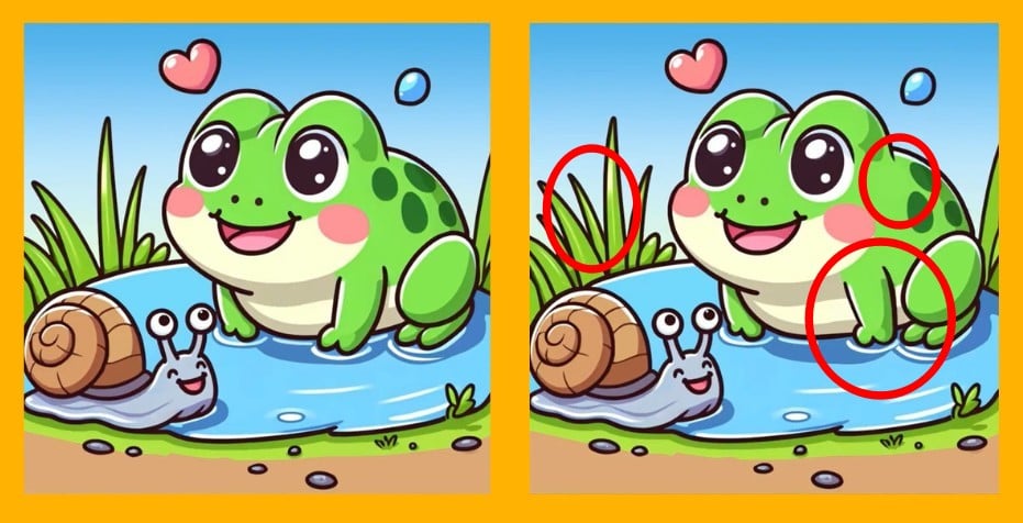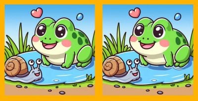 Дакле, да ли сте спремни за следећи изазов? Пажљиво погледајте две слике жабе и пужа. На први поглед могу изгледати исто, али крију 3 мале разлике. Мислите да их све можете пронаћи за 17 секунди? Пробајте и тестирајте своју оштрину вида!