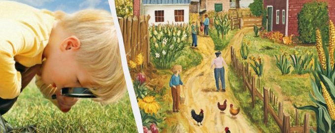На пример, покушајте да схватите шта није у реду на цртежу баште у којој млада жена ради. Или потражите ману на слици сликовите улице која није одмах очигледна.