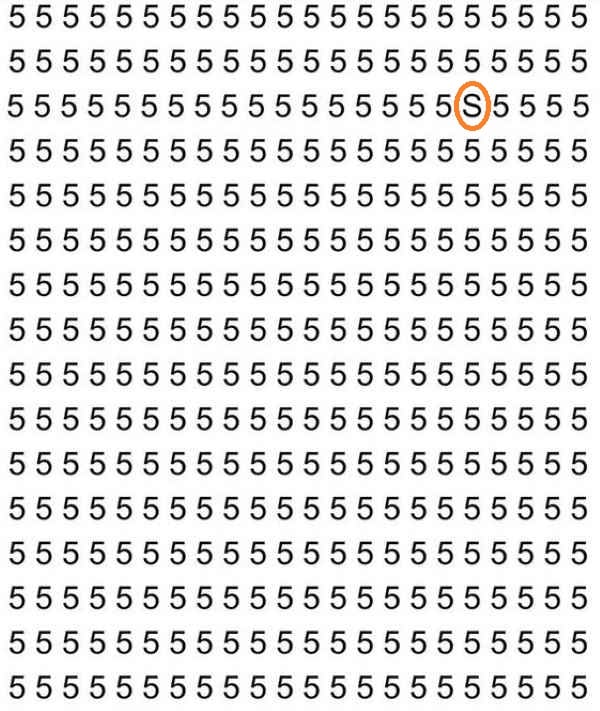 У следећој оптичкој илузији морате пронаћи слово С међу великим бројем бројева 5, пише јаграњош.