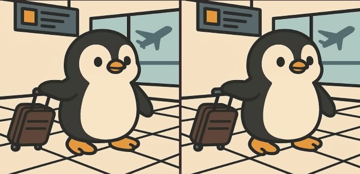 Дакле, да ли сте спремни за следећи изазов? Погледајте изблиза две слике слатког пингвина који носи пртљаг на аеродрому. На први поглед могу изгледати исто, али крију 3 мале разлике. Мислите да их све можете пронаћи за 61 секунду? Пробајте и тестирајте своју оштрину вида!