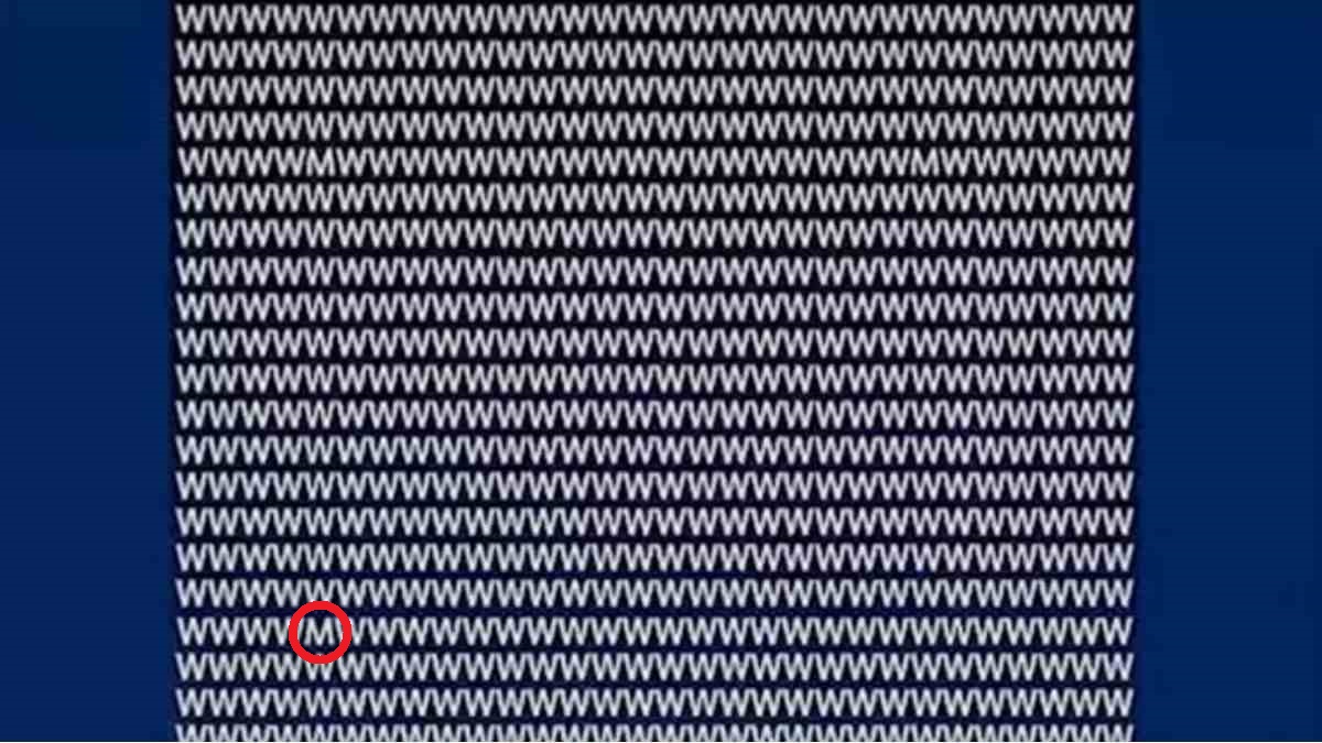 У следећој оптичкој илузији треба да пронађете слово М међу великим бројем слова В, пише јаграњош. Неће бити лако уочити где се тачно крије писмо које се разликује од свих осталих.