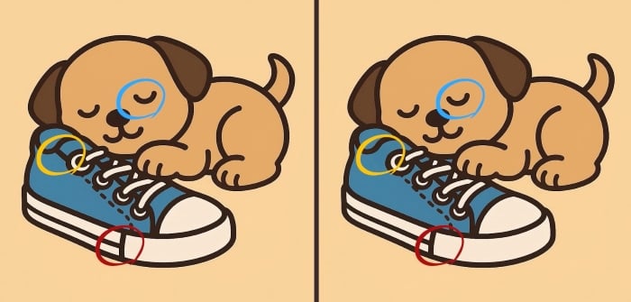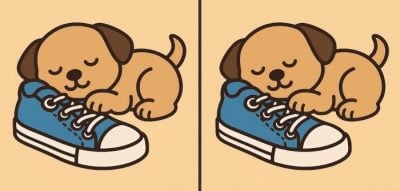 Дакле, да ли сте спремни за следећи изазов? Пажљиво погледајте две слике штенета који спава на ципели. На први поглед могу изгледати исто, али крију 3 мале разлике. Мислите да их све можете пронаћи за 51 секунду? Пробајте и тестирајте своју оштрину вида!