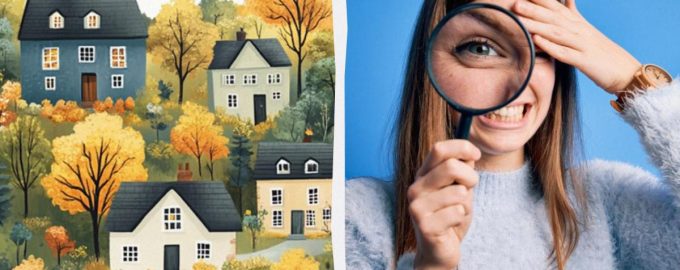 Испод ћете видети слику стамбеног насеља са удобним кућама и шареним дрвећем. Ваш задатак је да пронађете роде међу овом лепотом.