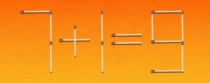 Испод ћете видети слику на којој је једнакост 7+1=9 положена шибицама. Очигледно је да је то математички нетачно и морате то да поправите тако што ћете померити само две од 15 шибица.