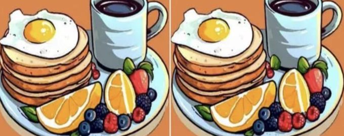 У новој слагалици у којој се неки људи чешу по глави, морате пронаћи три разлике између два тањира хране за доручак који садрже палачинке, јаја и воће. Поред њих је шоља кафе да све то исперу.