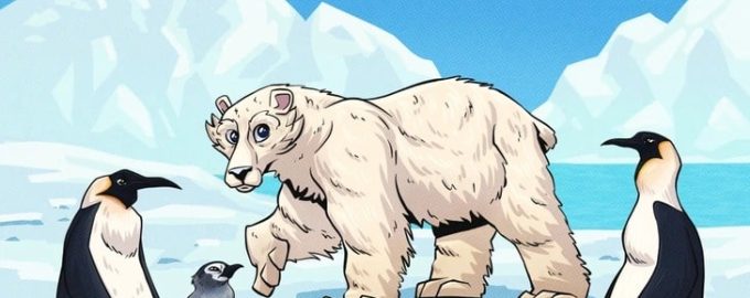 На слици видимо поларног медведа и пингвине. Чини се да нема ништа необично. Али нешто на слици није како би требало да буде.