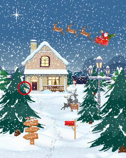 Ако имате потешкоћа да пронађете скривеног вилењака, не брините. Ви нисте сами. Многима је ова слагалица веома тешка. Узмите наговештај: погледајте део слике између јелке лево и улазних врата стамбене зграде. Тачан одговор је заокружен црвеном бојом.