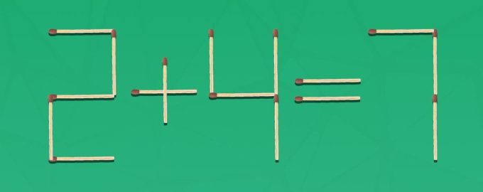 На први поглед, ова слагалица је врло једноставна, али немојте је потценити. Да бисте пронашли право решење, биће вам потребна пажња, логично размишљање и способност уочавања детаља. Треба да исправите нетачну математичку једначину 2 + 4 = 7, састављену од 16 шибица, тако што ћете померити једну од њих.
