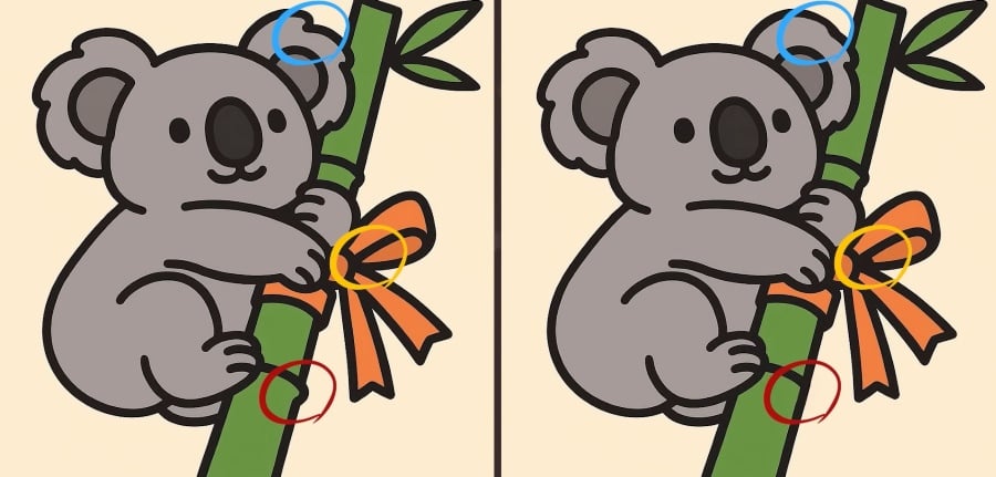 Дакле, да ли сте спремни за следећи изазов? Пажљиво погледајте две слике коале која грли бамбус. На први поглед могу изгледати исто, али крију 3 мале разлике. Мислите да их можете пронаћи све за 33 секунде? Пробајте и тестирајте своју оштрину вида!