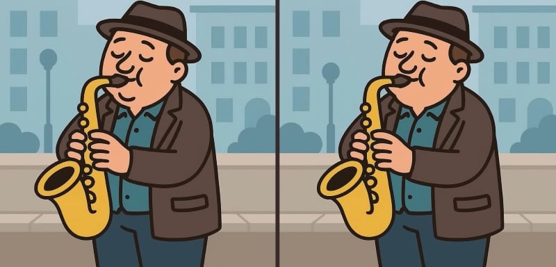 Дакле, да ли сте спремни за следећи изазов? Пажљиво погледајте две слике човека који свира саксофон. На први поглед могу изгледати исто, али крију 3 мале разлике. Мислите да их све можете пронаћи за 31 секунду? Пробајте и тестирајте своју оштрину вида!