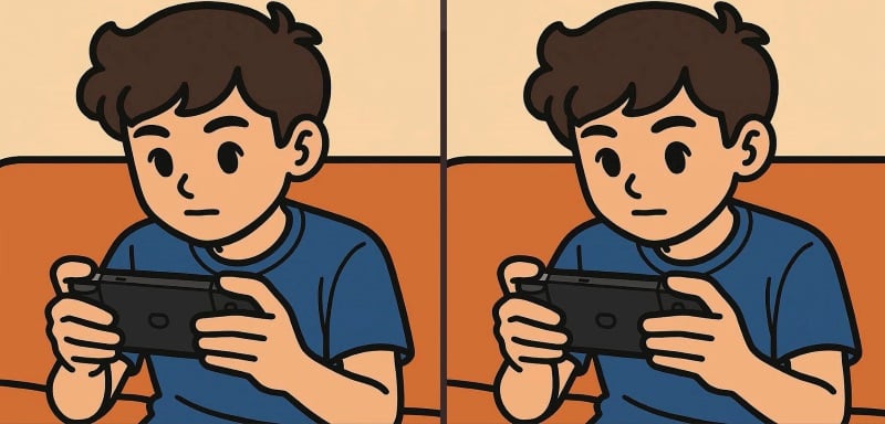 Дакле, да ли сте спремни за следећи изазов? Пажљиво погледајте две слике дечака који игра видео игрице. На први поглед могу изгледати исто, али крију 3 мале разлике. Мислите да их све можете пронаћи за 71 секунду? Пробајте и тестирајте своју оштрину вида!