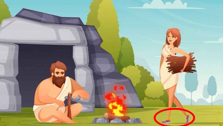 У следећој загонетки треба да пронађете грешку на цртежу, пише јаграњош. На слици видимо примитивне људе – мушкарца и жену – који су запалили ватру за кување у близини пећине у којој живе.