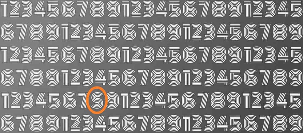 У следећој оптичкој илузији треба да пронађете слово С међу великим бројем бројева, пише јаграњош. Неће бити лако схватити где се крије неваљало писмо.