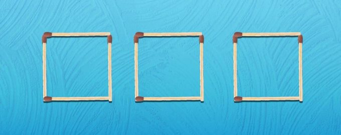 Овај задатак ће тестирати ваше логичко размишљање. Испод ћете видети колаж где су три идентична квадрата постављена шибицама. Укупно је искоришћено 12 шибица.