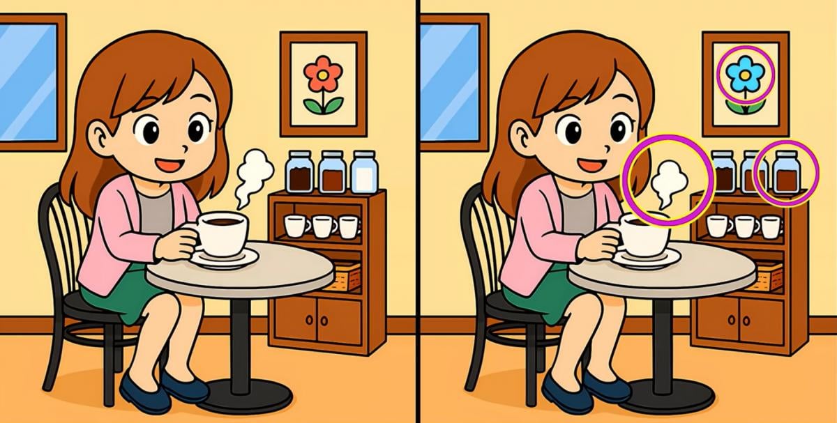 Дакле, да ли сте спремни за следећи изазов? Пажљиво погледајте две слике девојке која пије кафу. На први поглед могу изгледати исто, али крију 3 мале разлике. Мислите да их све можете пронаћи за 19 секунди? Пробајте и тестирајте своју оштрину вида!