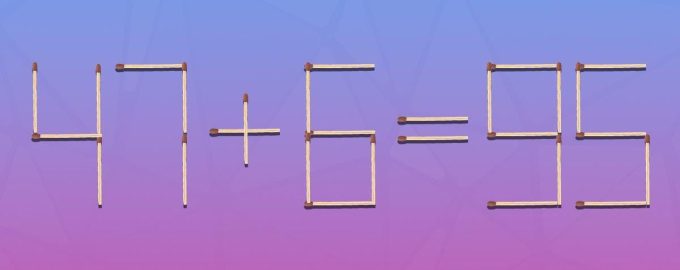 Дакле, направили смо слику на којој је једнакост 47+6=95 положена шибицама. Очигледно нешто овде није у реду јер би одговор требало да буде 53.