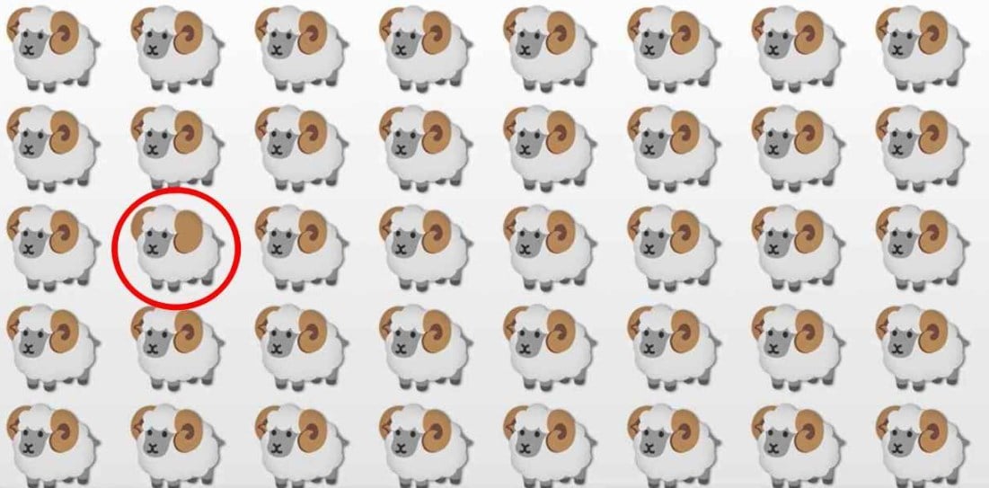На слици су овце. Чини се да су сви исти. Међутим, међу њима постоји и „посебна” овца, и то је оно што треба да нађете. Потребно је само неколико секунди.