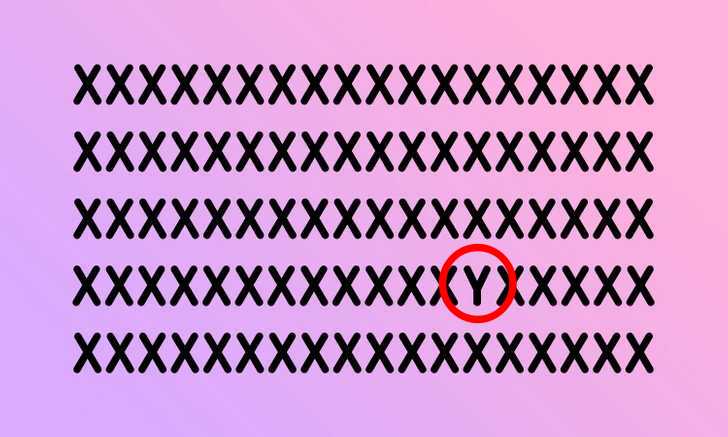 На слици изнад можете видети мрежу са словима Кс. Велики број Ксс одвлачи пажњу од једног препознатљивог слова, које је скривено међу гомилом. Морате што пре пронаћи писмо које се разликује од свих осталих.